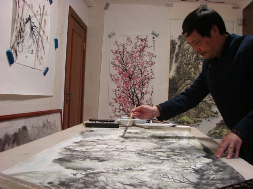 曾永松在创作山水画