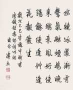 溥杰自幼受到严格的书法基础训练,工行书,初学虞世南,后受其业师赵世骏影响而自成一体,所作隽秀爽健,婀娜多姿。生前为中国书法家协会名誉理事,全国人大民族委员会副主任委员。