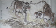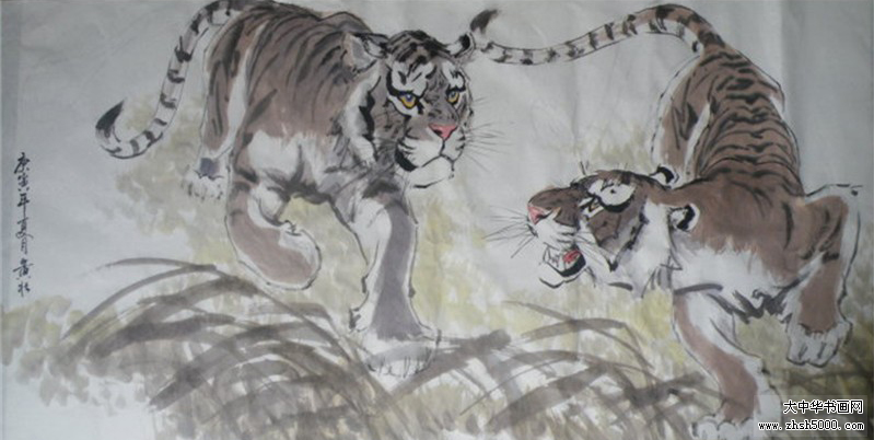 黄壮国画 双虎